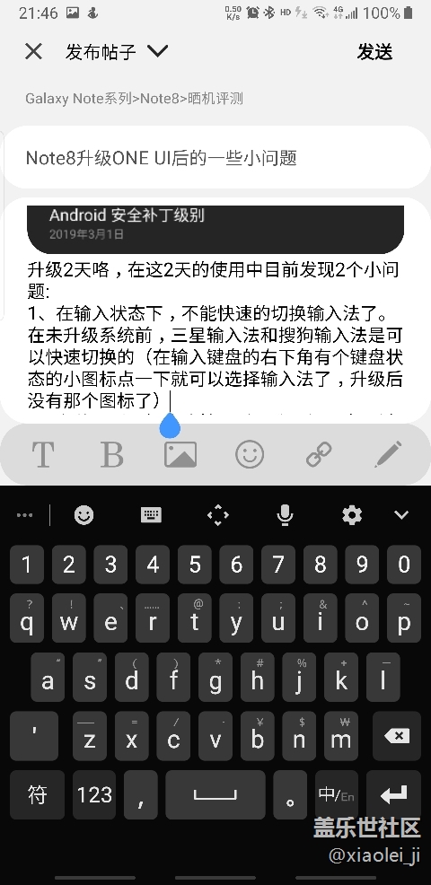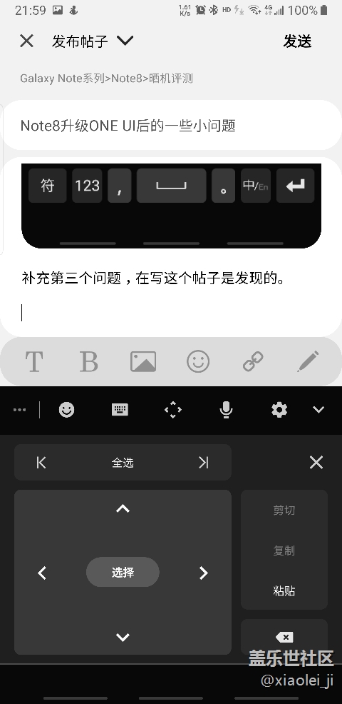 補充個問題:三星輸入法的選擇性復制,在微信中可以正常使用,在我編輯這個帖子是不能正常使用。