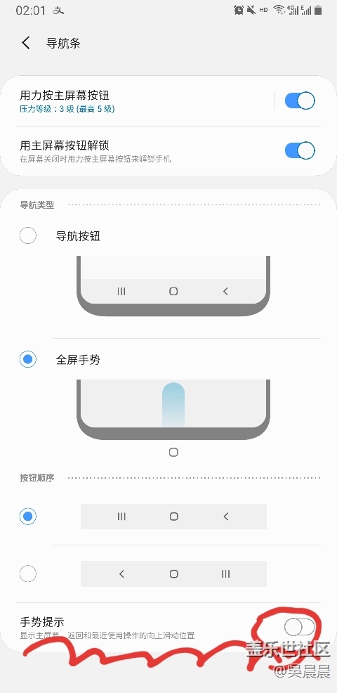 手勢提示關掉就好,特別好用。愛不釋手,以前是從下上滑,出現(xiàn)在點擊,現(xiàn)在直接上滑生效,實用,大伙覺得呢?