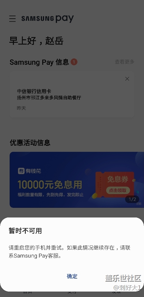 帖子標(biāo)題: s8+升級(jí)one UI后三星支付總是出現(xiàn)問(wèn)題