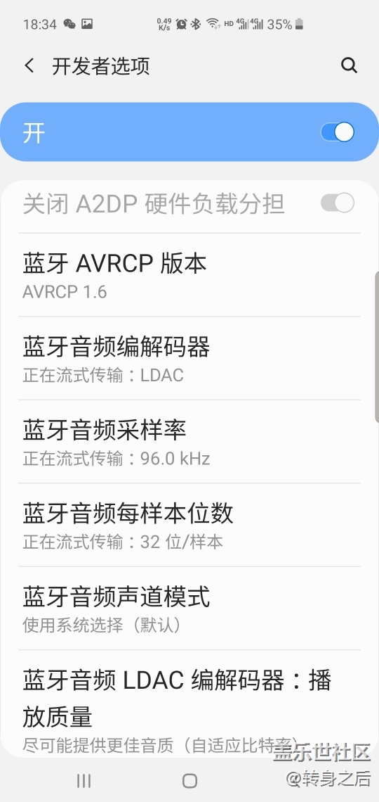 4月11號(hào)京東無(wú)貨,問(wèn)了專賣店說(shuō)有貨,過(guò)去試聽,居然說(shuō)被店長(zhǎng)帶出去了,原本抱著觀望的想法的,只能付款。帶上去一聽,音質(zhì)很一般啊,還不如那個(gè)自帶的akg,但是環(huán)境音一打開,發(fā)現(xiàn)效果好,邊上人說(shuō)話都聽的清楚。慢慢使用了幾天,發(fā)現(xiàn)過(guò)一次斷連,放進(jìn)盒子拿出來(lái)又好了,關(guān)于音質(zhì)問(wèn)題,建議大家先進(jìn)入設(shè)置-藍(lán)牙,把雙藍(lán)牙功能關(guān)閉,然后進(jìn)入設(shè)置進(jìn)入開發(fā)者選項(xiàng)(設(shè)置-關(guān)于手機(jī)-軟件信息-編譯編號(hào),點(diǎn)擊5-8下)找到藍(lán)牙音頻編解碼器選到LDAC或者Scalable codec(請(qǐng)問(wèn)大神這兩個(gè)選項(xiàng)有什么區(qū)別?百度上也查不出來(lái))