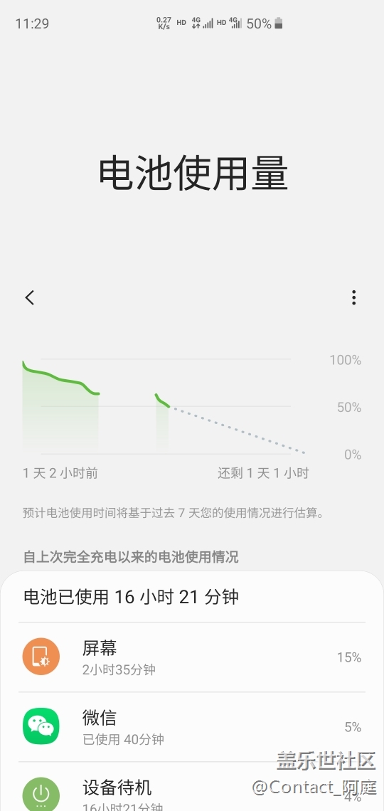 如圖,充滿電后開始使用,一般工作使用,平時有空刷下新聞小說社區(qū)看下小片,不怎么玩游戲,偶爾也會王者榮耀一下。晚上十二點到早上八點上班前自動關(guān)機,第二天八點自動開啟。中度使用能撐兩天。我看下你們的續(xù)航圖,怎么都尿崩了?你們恢復(fù)出廠設(shè)置一下使用干凈模式進入桌面重新弄一下吧?