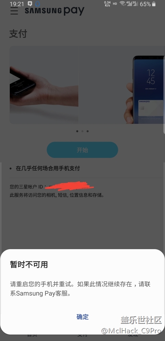 帖子名稱 Samsung pay 升級后一直不能用