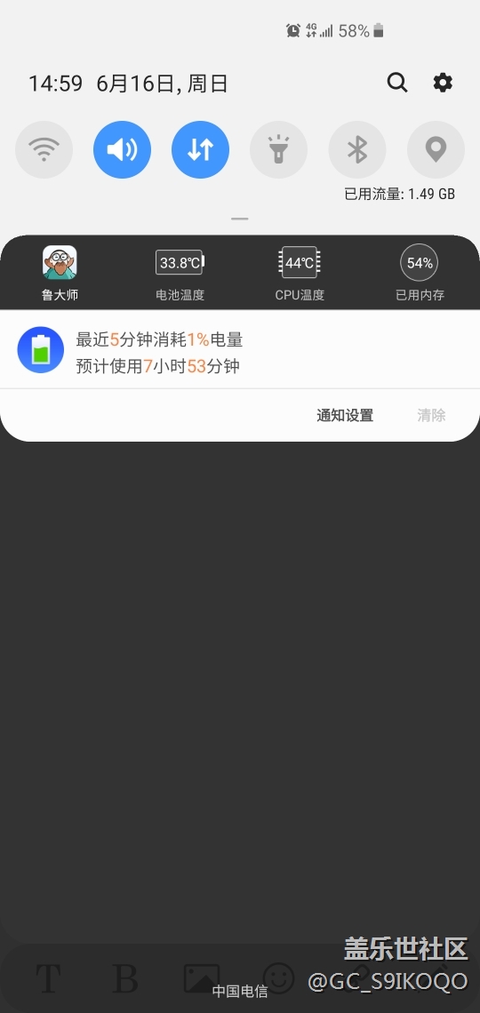 S10發(fā)熱U44度,天氣溫度28度,手機(jī)無后臺(tái)情況下溫度 圖片