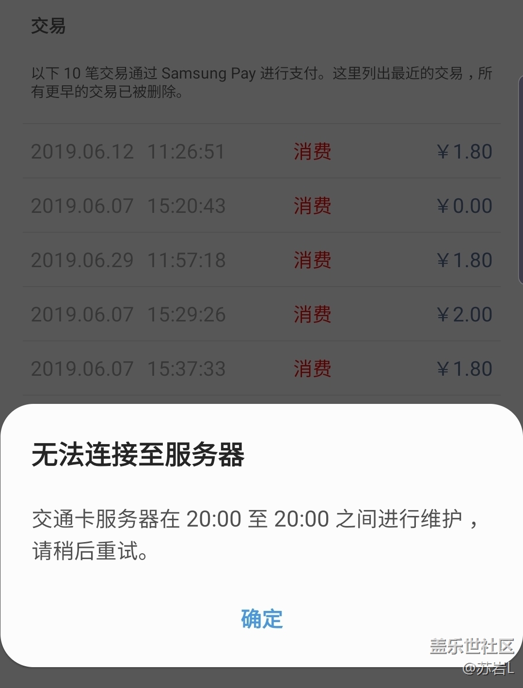 三星pay交通卡兩天無(wú)法充值 圖片
