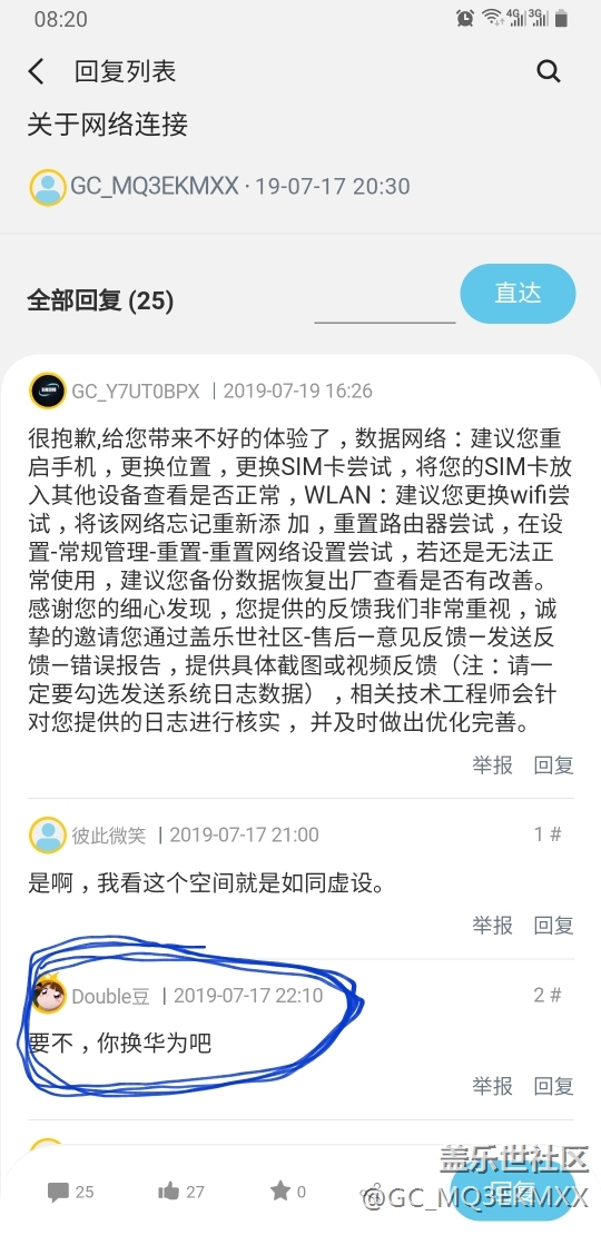 緣由兄弟們可以看看我上一篇發(fā)布的帖子,這就是作為一個版主和用戶的對話,是實在搞不懂哪里來的優(yōu)越感,作為一個用戶體驗者,吐槽一下網(wǎng)絡(luò)信號,不去解決問題不說,說風(fēng)涼話?呵呵我們要的是完美的用戶體驗,不是說我們花著錢還在這里讓你們說風(fēng)涼話的……