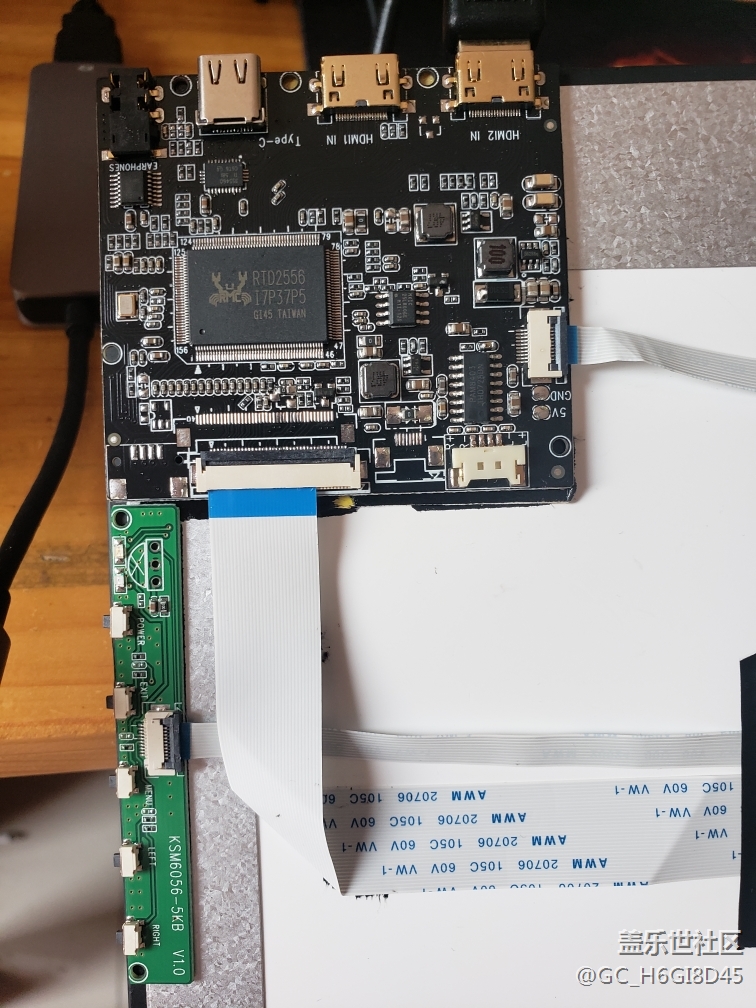 筆記本拆機屏幕改裝,窄邊框。一線通驅(qū)動板,2個miniHDMI,1個TYPE-C接口,外加一個擴展塢,電源用手機充電器,直接裸奔。