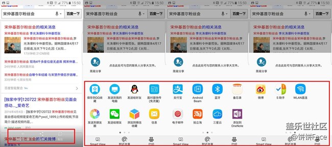 三星Galaxy S7系列支持截圖快速分享功能,你的截圖可以分享到各種社交軟件,比如微博、微信、朋友圈;還可以傳送給附近小伙伴;更可以運(yùn)用到你的電子郵件、備忘錄甚至是office當(dāng)中!是不是很方便?!