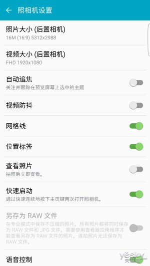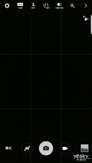 在拍照界面上,三星Galaxy S6 edge+整體呈現(xiàn)比較簡(jiǎn)單易用,一側(cè)是設(shè)置、閃光燈、延時(shí)拍照、HDR等功能的快捷調(diào)節(jié)圖標(biāo),另一側(cè)則是前置、主攝像頭、視頻、照片的切換,整體比較符合用戶習(xí)慣。