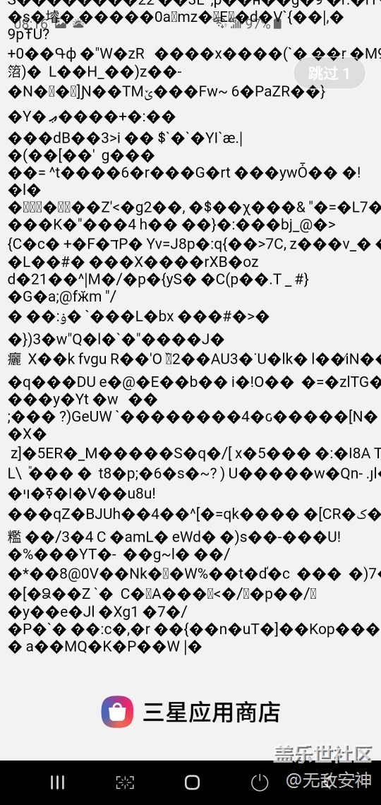 今天打開三星應(yīng)用商店,應(yīng)該是又準(zhǔn)備加載廣告,轉(zhuǎn)個(gè)圈就亂碼了,三星真糟心
