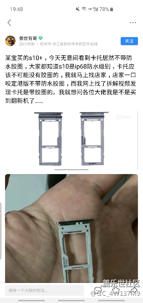 帖子標(biāo)題: 貼吧吧友某寶買(mǎi)港版s10+竟然沒(méi)有防水膠圈