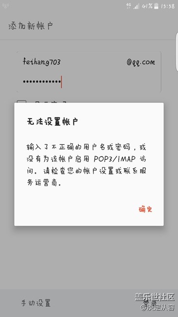 S6edge自帶電子郵件登陸QQ郵箱,登陸不了,一直顯示登陸錯(cuò)誤!