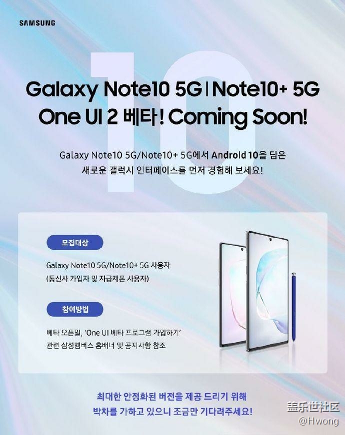 帖子標題: 韓國即將開始note 10的測試。