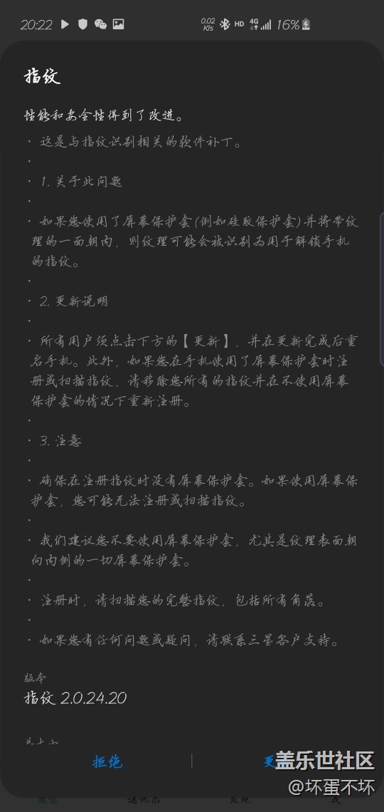帖子名稱 收到指紋更新了