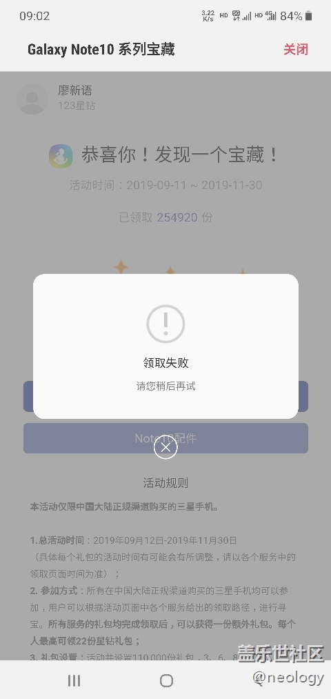 NOTE10尋寶活動里面三星健康的星鉆沒法領(lǐng)取???? 圖片