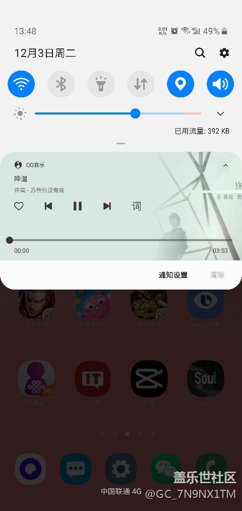 打開QQ音樂,然后關(guān)掉后臺,通知欄還會出現(xiàn)這種播放界面,