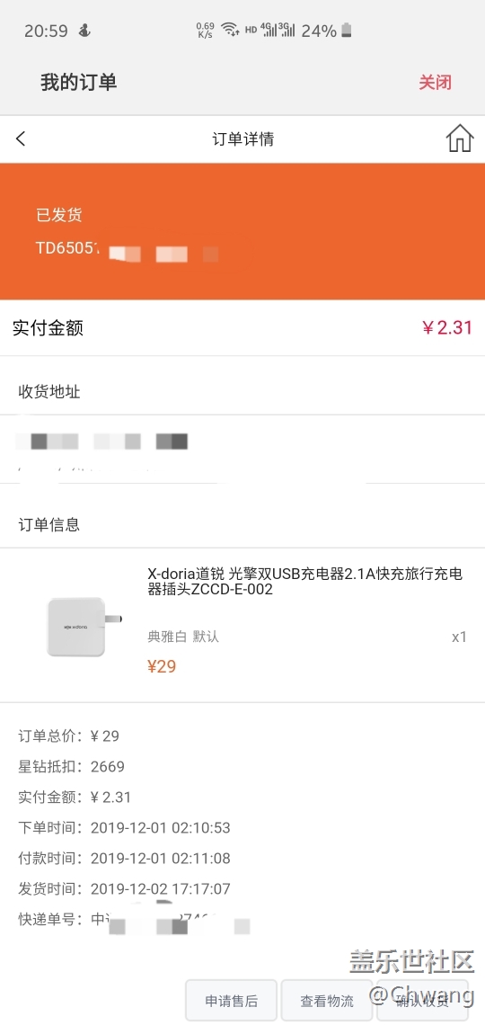 帖子名稱: 三星星鉆抵換的充電頭到了