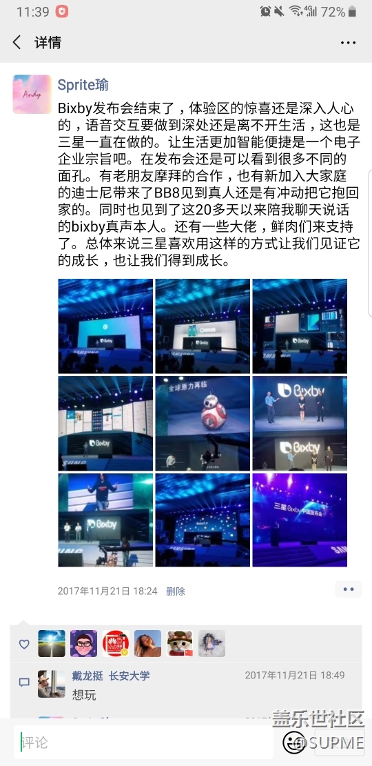 兩周年了!從測試到發(fā)布會再到升級,bixby從誕生的一步步成長我都見證了!最難忘的是測試時候后每天幾百次的試用,反饋問題,提出優(yōu)化建議不厭其煩的刷新紀錄!最后bixby以最佳手機語音助手出現在世人面前!非常欣慰,就像看著自己的孩子長大了!為此我也獲得了一只三星S3手表!在發(fā)布會上也見證了智慧AI互聯,希望bixby未來更加智能!我看好你!孩子,我將與你同行!