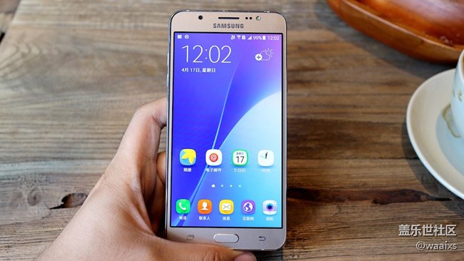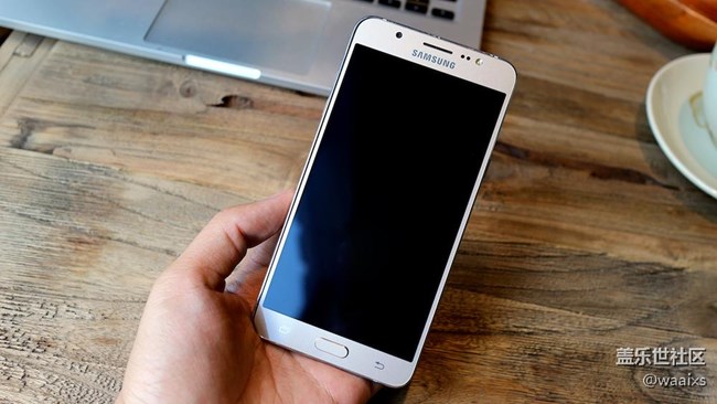 精致生活源于細(xì)節(jié),精致手機(jī)同樣如此。三星Galaxy J7的屏幕四周鑲嵌一圈金屬邊框,極具視覺(jué)感的同時(shí)可以有效減少碎屏幾率,相當(dāng)值得稱(chēng)贊。而且邊框采用曲線過(guò)度,拿在手里并沒(méi)有明顯的割手感,這樣的三星Galaxy J7拿出來(lái)特別有面———畢竟在咖啡館里拿臺(tái)小米擺在桌上,總感覺(jué)有種揮之不去的別扭感覺(jué)。