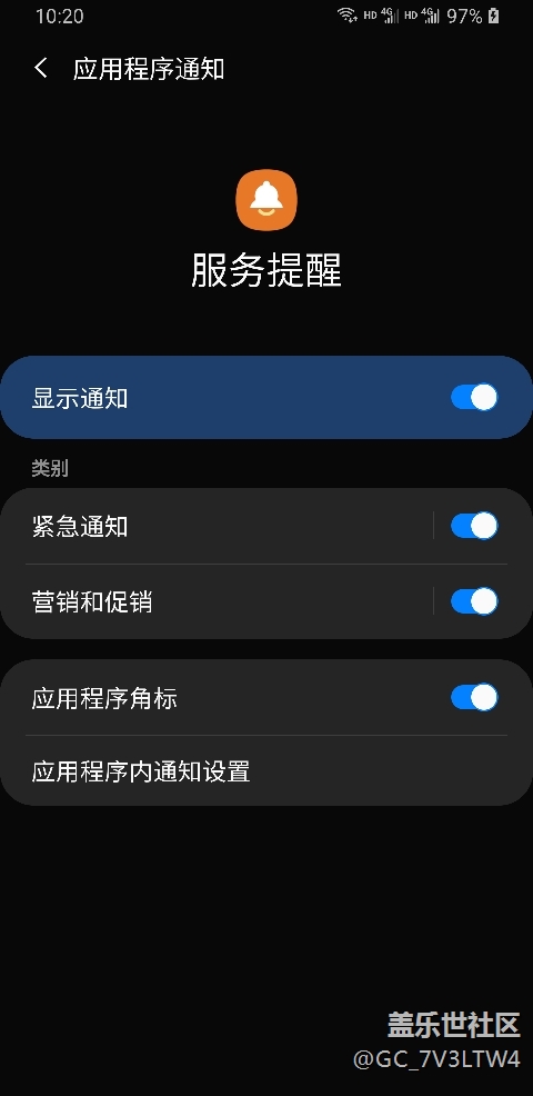 需要手動(dòng)打開(kāi),在設(shè)置中搜索“服務(wù)提醒”,進(jìn)入“通知”,“應(yīng)用程序內(nèi)通知設(shè)置”即可開(kāi)啟推送服務(wù),需要先同意*政策服務(wù)條款。
