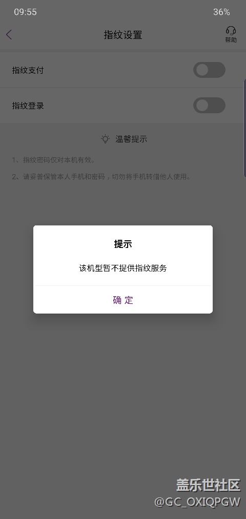 部分銀行軟件指紋功能不可用 圖片