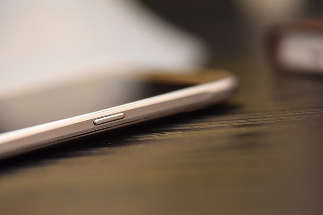 三星經(jīng)典耐看的HOME鍵設(shè)計,在HOME鍵的兩側(cè)用淺淺的金色設(shè)計了對稱的菜單鍵和返回鍵。