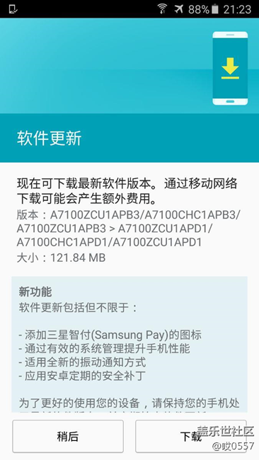 帖子標題: 三星A7100推送智付了,大家快來更新