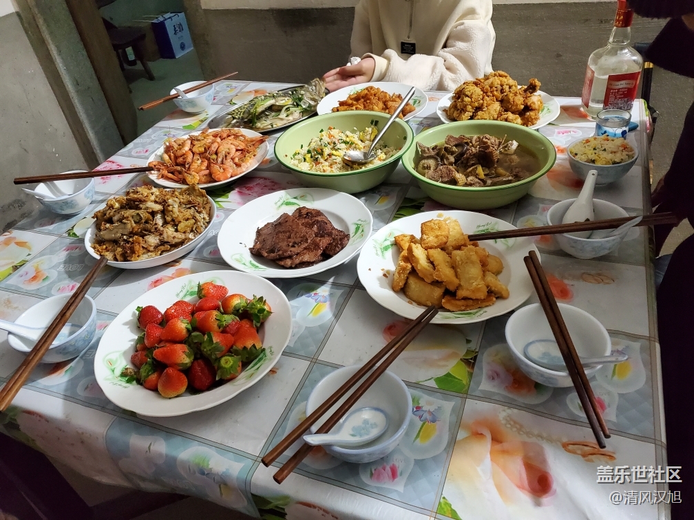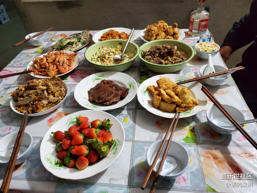 年夜飯好不好看,好不好吃不重要,重要的是一家人整整齊齊的都在,除了爺爺現(xiàn)在年紀大了,每個人都一起在廚房忙碌的一下午真溫馨,哈哈哈,我終于也自己做了一道菜,炸雞腿,味道還不錯。別人家過年都吃餃子,炒米粉的,我家不一樣,每個人就喜歡吃蛋炒飯,算是我家特色吧,過去蛋炒飯是唯一一道被吃得干干凈凈的,而且是一上桌就被哄搶!