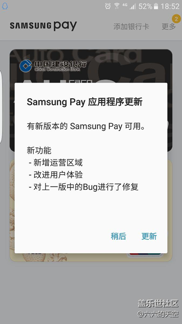 帖子名稱: 三星智付有更新,大家更了么?