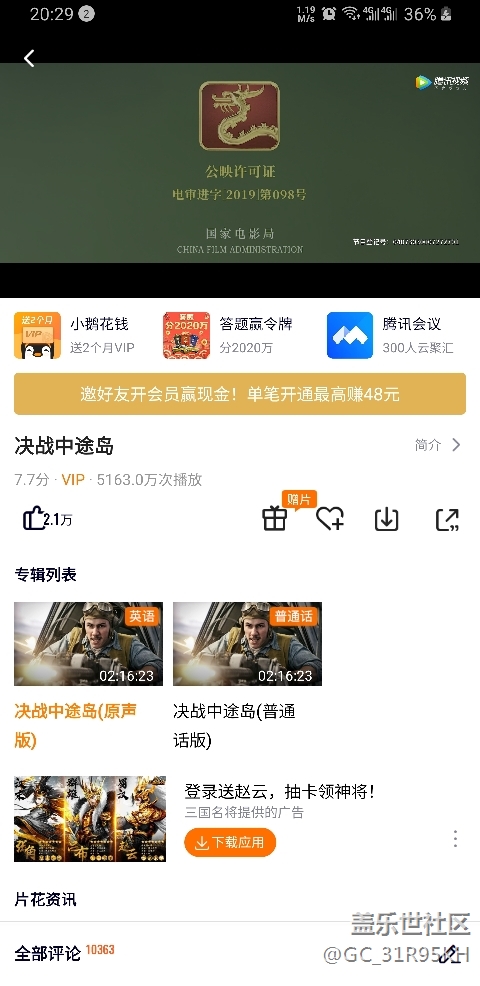看下圖,第一張是騰訊視頻,第二張是優(yōu)酷視頻。