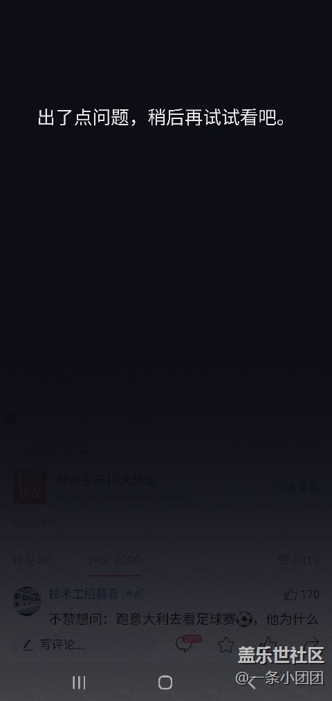 bixby語音近期經(jīng)常出現(xiàn)bug崩潰現(xiàn)象。使用語音鍵呼叫語音時(shí),總是出現(xiàn)如下圖所示問題。不管是切換網(wǎng)絡(luò)還是修改設(shè)置都不行。使用語音喚醒時(shí)總是顯示:出了點(diǎn)問題,請(qǐng)稍后再試。只能通過重啟手機(jī)來解決。以前的時(shí)候語音只是由于網(wǎng)絡(luò)連接不穩(wěn)定,才會(huì)出現(xiàn)這種,現(xiàn)在是如果一天沒有使用語音的話,可能就會(huì)出現(xiàn)這種問題