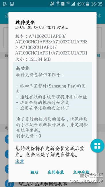 今天收到更新,有三星智付,很好,然后試了下。聯(lián)系系統(tǒng)也能盡快提升更新!