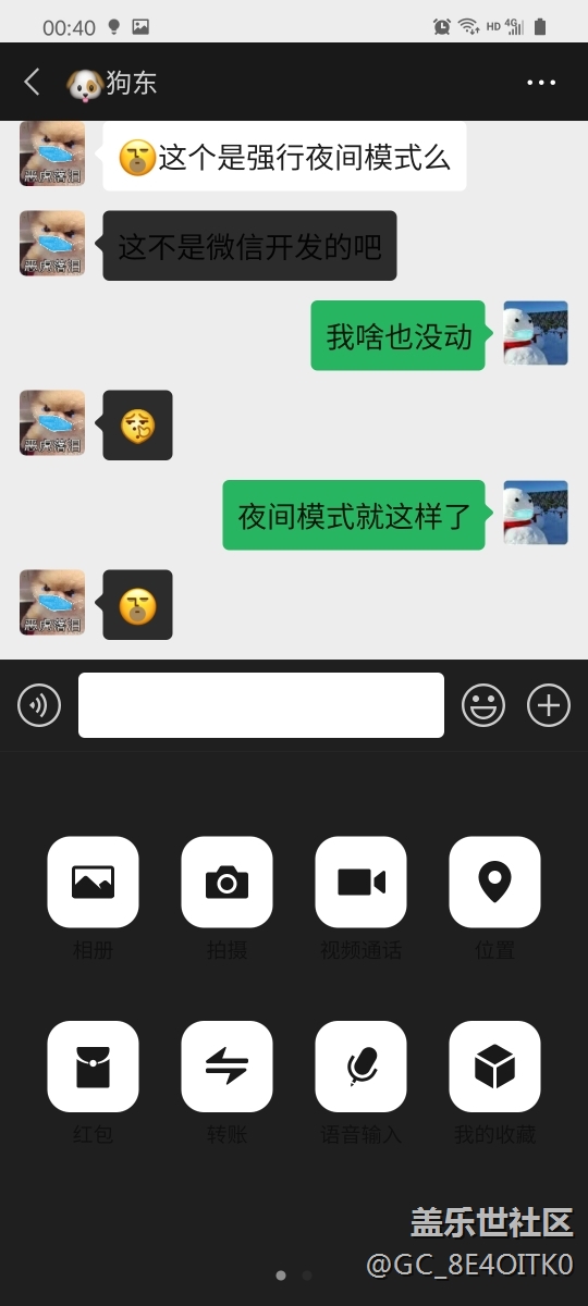 或是說這個(gè)版本的微信本不支持夜間模式,但被oneui強(qiáng)行黑暗模式了才導(dǎo)致這種效果呢?