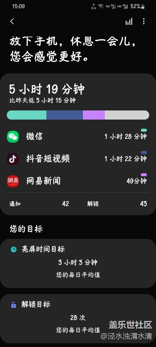 首先我不玩游戲,大部分用戶估計(jì)白天也沒空玩。我早上6:30滿電拔了插頭,期間基本是不間斷的刷各種APP,截止到下午15:13分,電量還剩52%,續(xù)航還是比較滿意的。我后臺(tái)就一個(gè)微信自啟運(yùn)行,WiFi和數(shù)據(jù)都是開啟的。