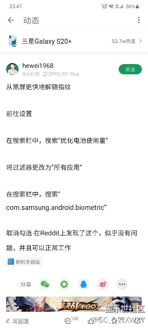 帖子標(biāo)題: 三星s20+指紋識別加速