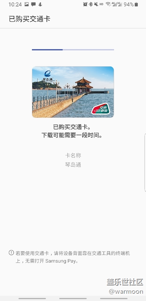 以為琴島通都放棄了!今天打開看了一眼交通卡!竟然!!琴島通也有了!立馬注冊(cè)買卡?。√袅耍疾幌腴_車了!!