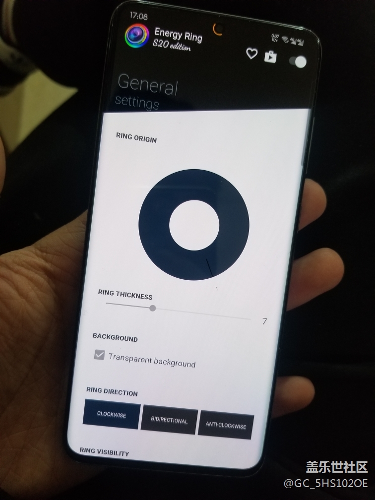 這是第三方軟件的效果,就是把電池顯示在攝像頭周圍,軟件叫energy ring,不過還是希望官方能出這樣的電池,挺有創(chuàng)意的,動圖是充電效果,也有別的動畫可選