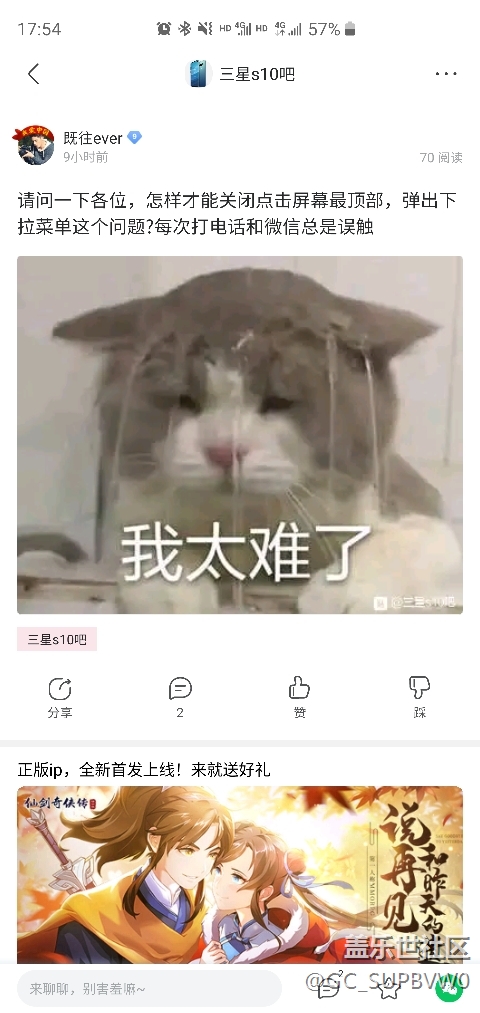 s10+,打電話總是誤觸打出來下拉菜單怎么辦 圖片