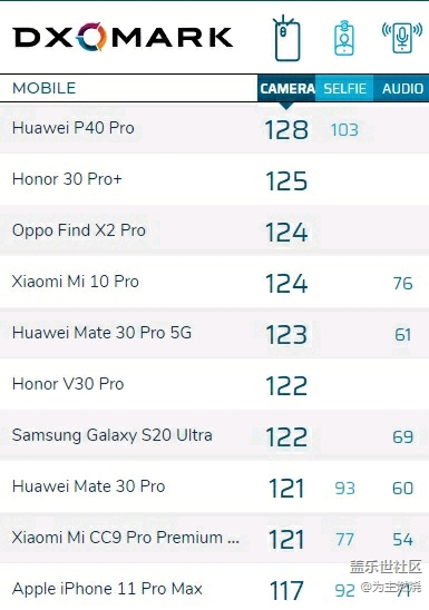 帖子標題: DxOMark 公布三星 S20 Ultra 相機評分