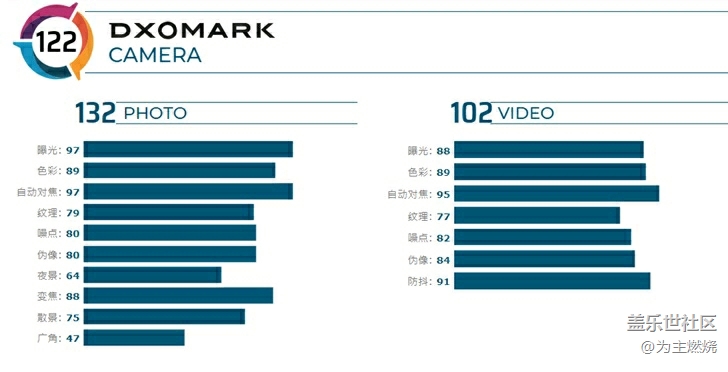 DxOMark官網公布了三星Galaxy S20 Ultra  相機得分,其中總分為122分,照片拍攝得分132分,視頻拍攝得分102分,總分在DXOMARK Camera排行榜中與榮耀V30 Pro并列第6名。