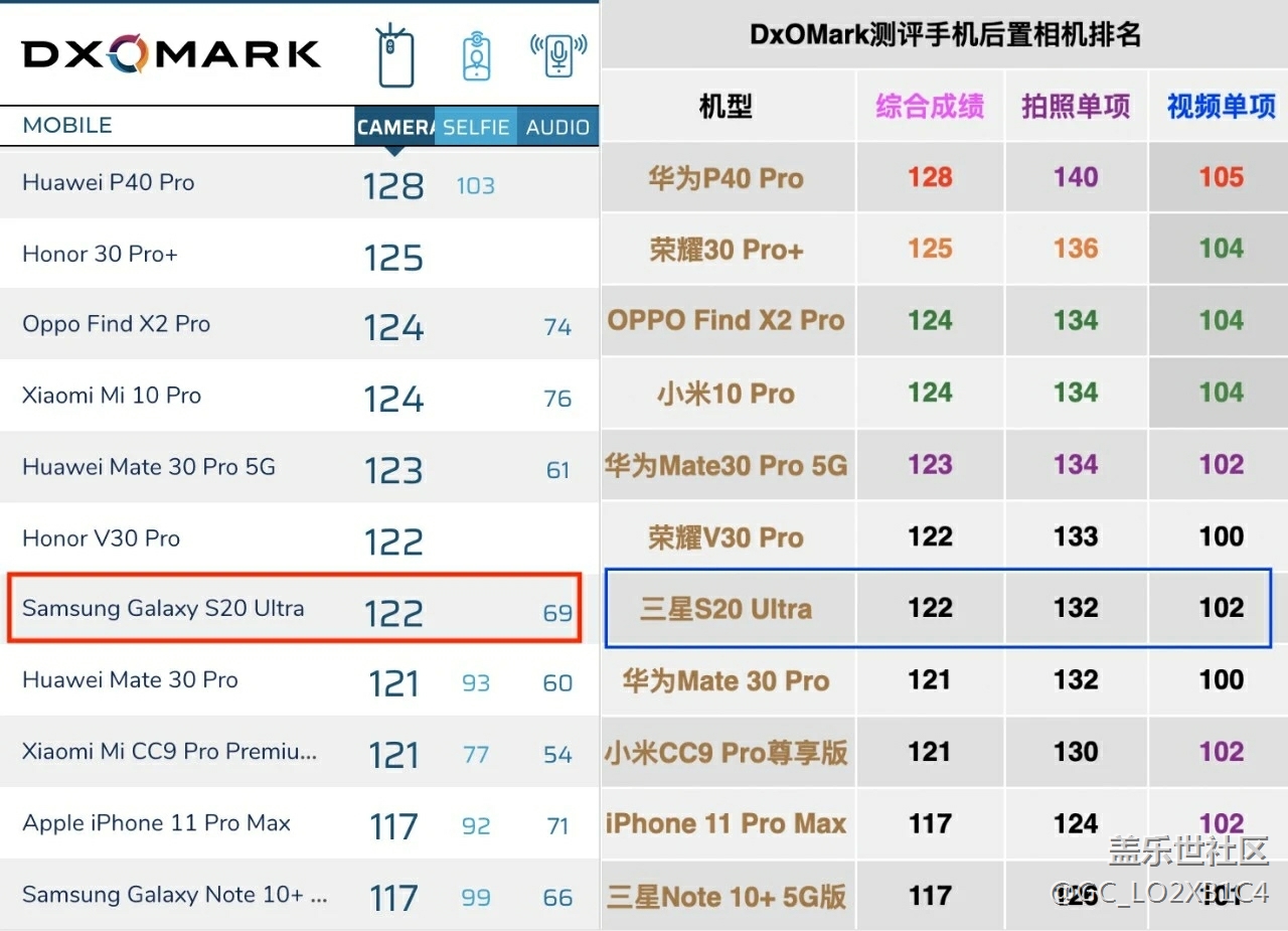 DxO更新三星S20Ultra相機(jī)成績(jī) 排第7名 圖片