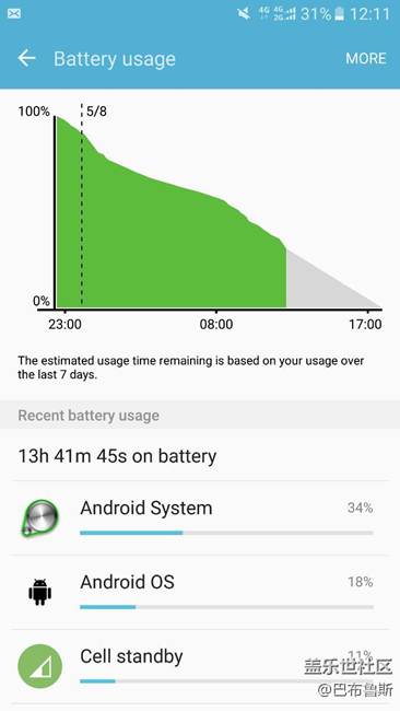 昨晚10:30充滿電后玩了一會(huì)手機(jī),然后關(guān)掉了所有后臺(tái)以及AOD,第二天起來,耗電曲線無比感人,甚至分不出來什么時(shí)候在亮屏玩耍,截止現(xiàn)在我的電量已經(jīng)只有百分之30,待機(jī)沒多久,亮屏連三個(gè)小時(shí)都沒到,希望三星早點(diǎn)可以解決耗電問題,電池變大了,耗電變快了,那還有什么用?在戈藍(lán)的微博評論區(qū)留言也沒什么動(dòng)靜,耐心已經(jīng)所剩無幾……(>﹏<)