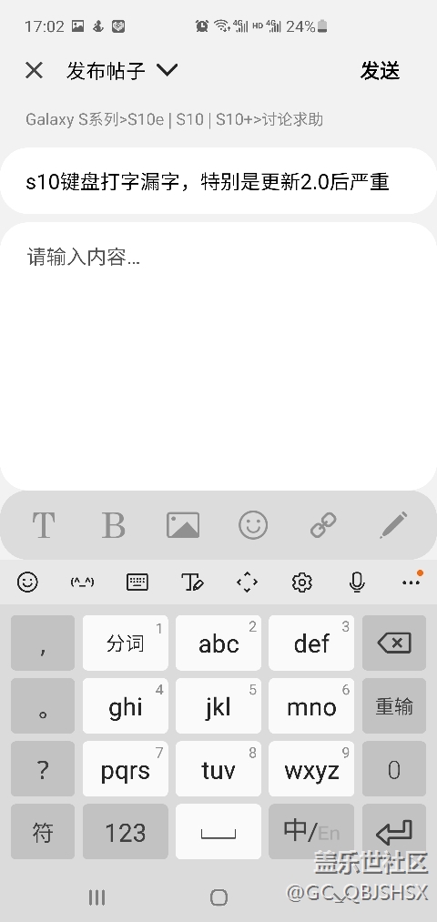 帖子名稱(chēng) s10鍵盤(pán)打字漏字,特別是更新2.0后嚴(yán)重