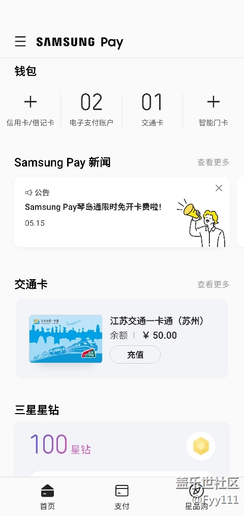 請問一下,這張公交卡是跟著我的三星賬號走的嗎?