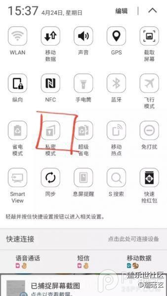 3.想看的時(shí)候呢,下拉通知欄,點(diǎn)開(kāi)私密模式按鈕就ok了!