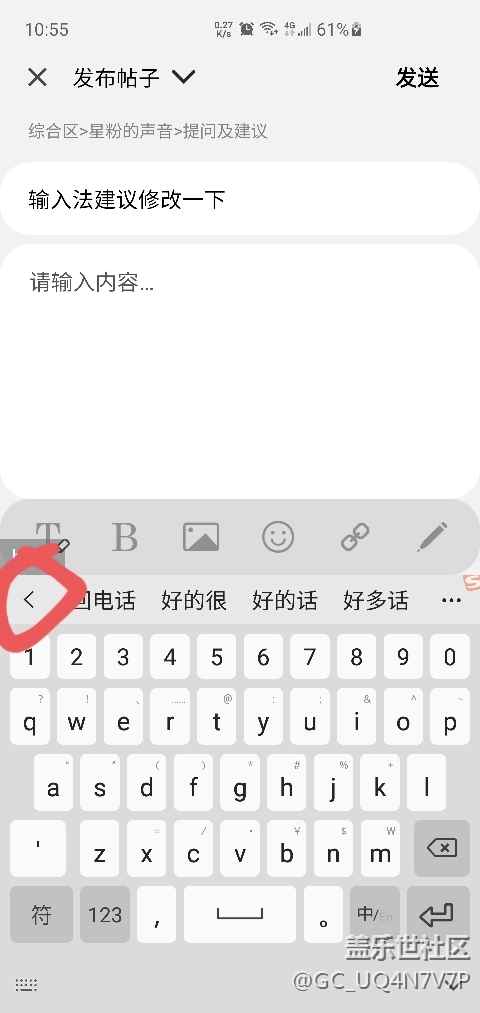 這個(gè)箭頭可以去掉嗎 占那么大空間而且多此一舉還容易誤觸 每次誤觸到他 打的字就沒(méi)有了 很煩很煩