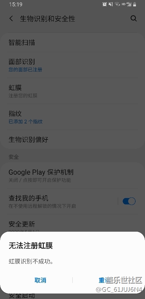 為什么虹膜識(shí)別注冊(cè)不了?S9+有同樣的問(wèn)題嗎 圖片