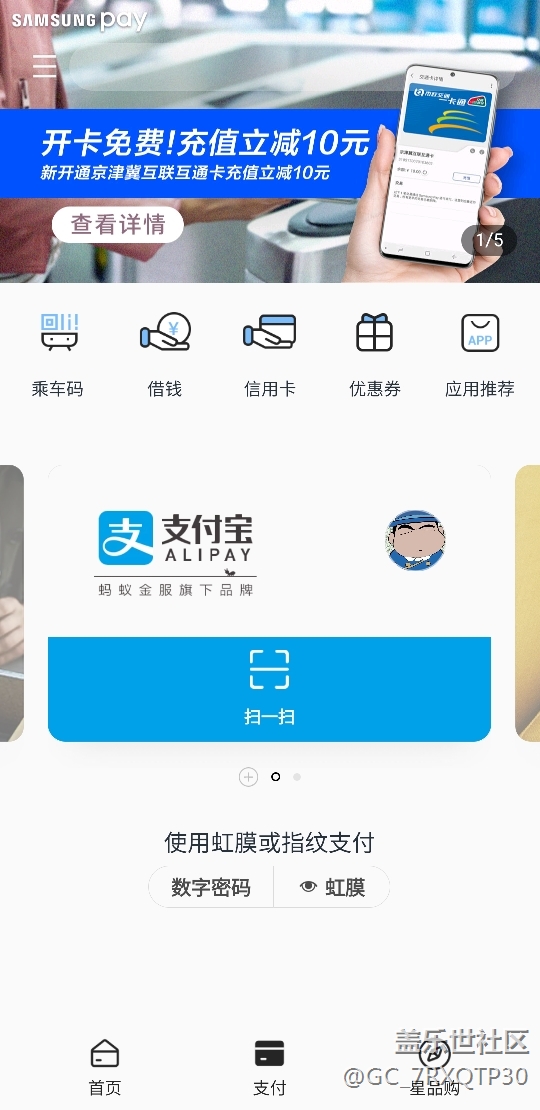 我的sumsung pay中沒有添加銀行卡,因?yàn)閷?shí)際應(yīng)用中,多數(shù)是掃碼,支付寶/微信。