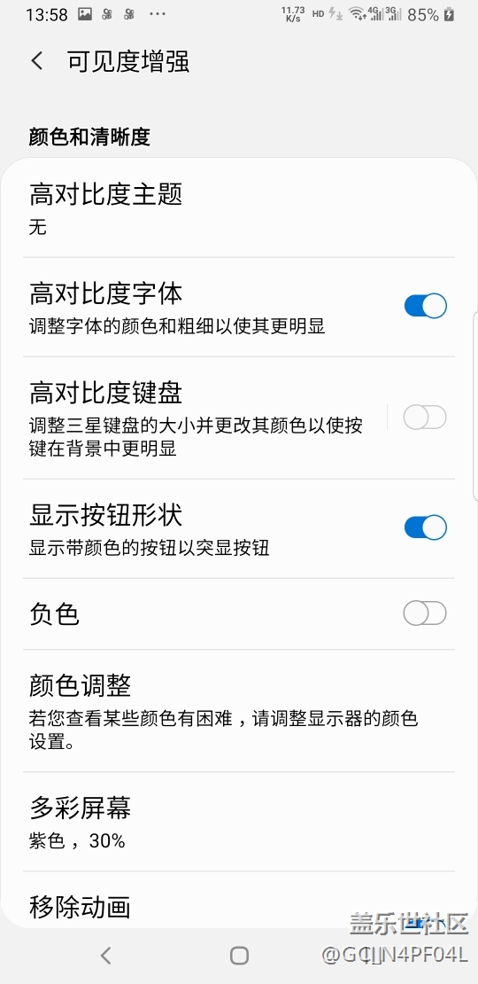 可見度增強(qiáng)里面的多彩屏幕設(shè)置好,應(yīng)該更加護(hù)眼??! 圖片