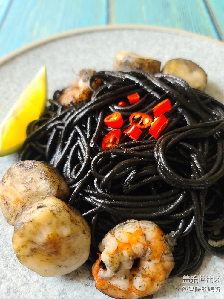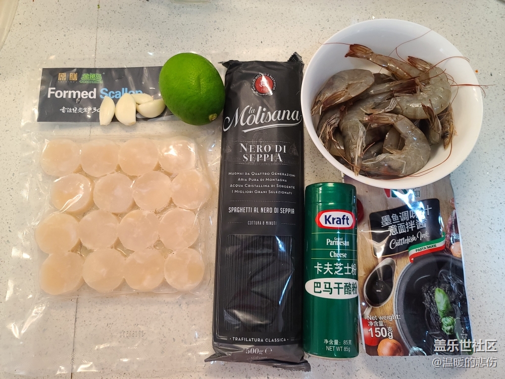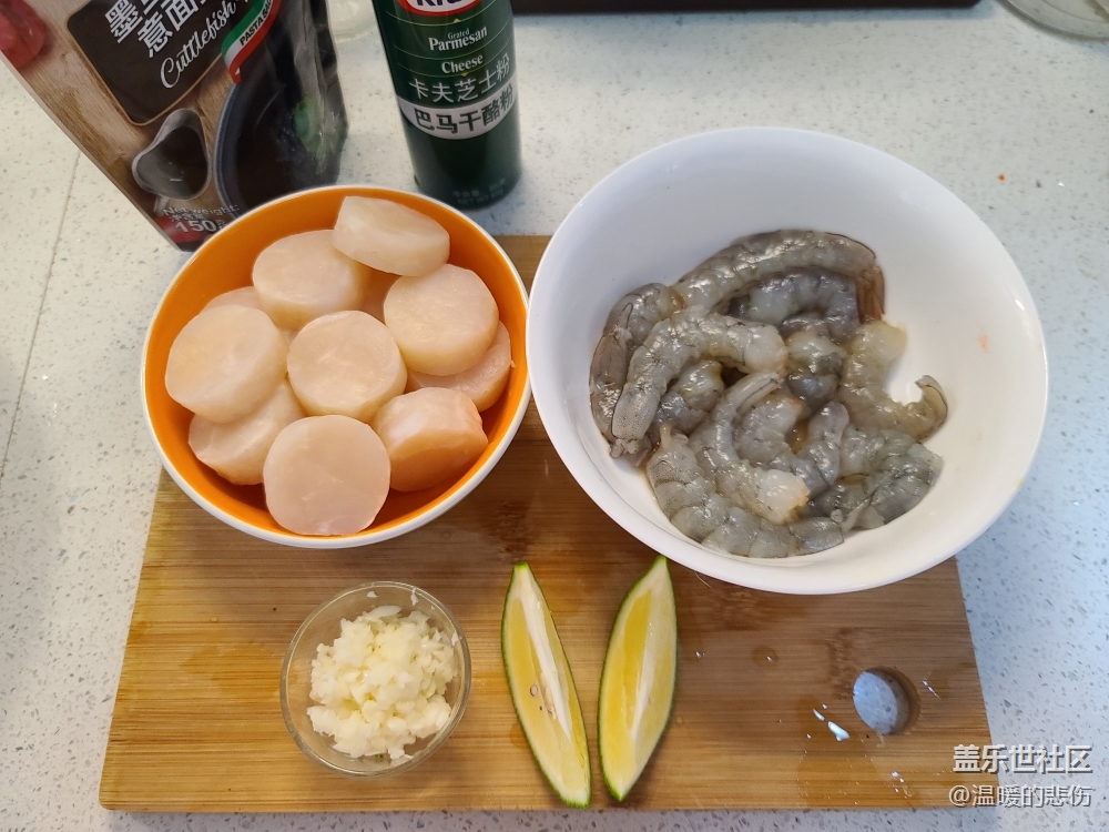 帶子洗凈用廚房紙吸干水分,蝦去皮去蝦線,檸檬汁在吃面時(shí)擠上可以提鮮