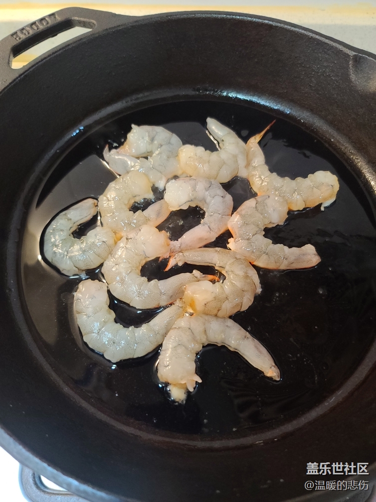 面快煮好時(shí)另起鍋,放橄欖油,放入蝦,一面變紅后,翻面時(shí)加入帶子